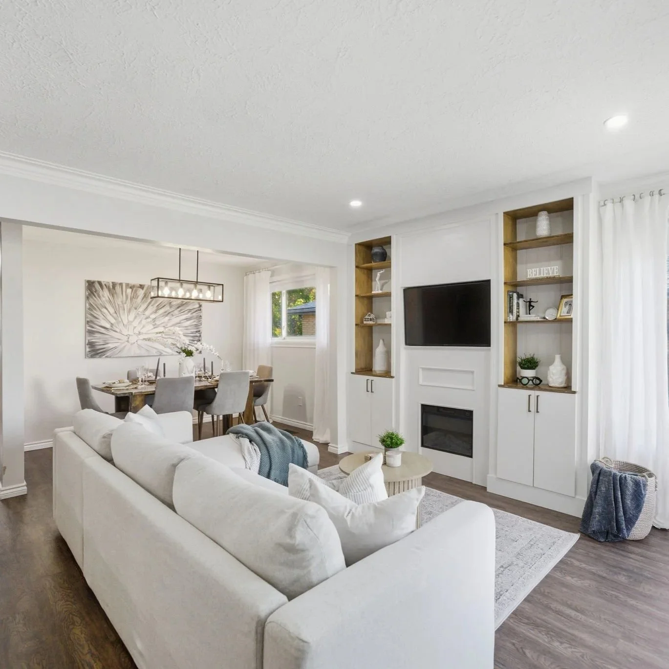 Less is more. Remove excess furniture, personal photos, and visual noise so buyer’s can focus on the space-not stuff. Clean open rooms feel larger and more inviting.
